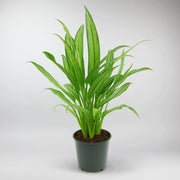 Die Aglaonema „Cutlass“ hat 40 bis 60 cm hohe Stängel, gekrönt von langen, schmalen Blättern, die elegant fächerartig nach oben ragen. Jedes Blatt hat eine blass-silbrig-grüne Innenseite mit dunkleren Adern und Rändern. Ihr aufrechter Wuchs passt gleichermaßen zu modernen, Mid-Century- und Übergangs-Einrichtungen. Präsentieren Sie sie auf Pflanzenständern neben Sofas, auf Bürotischen unter Pendelleuchten oder in einem dekorativen Keramiktopf auf einer Konsole. Ihre raffinierte Form wirkt auch in einem niedrigen Pflanzgefäß auf Esstischen oder Fensterbänken wunderschön.