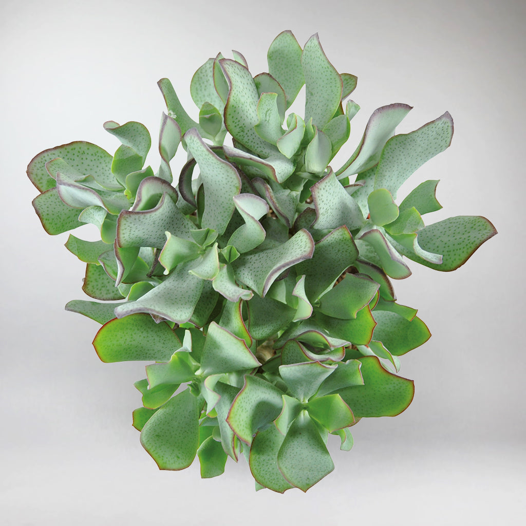 Die Curly Jade formt glänzende, wellige Blätter zu einem kunstvollen Kaskaden aus strukturiertem Grün. Diese skulpturale Sukkulente vereint skurrilen Charme mit immergrüner Widerstandsfähigkeit und wertet sowohl schicke Wohnzimmer als auch ruhige Arbeitsbereiche mit einer raffinierten botanischen Note auf, die nie aus der Mode kommt.