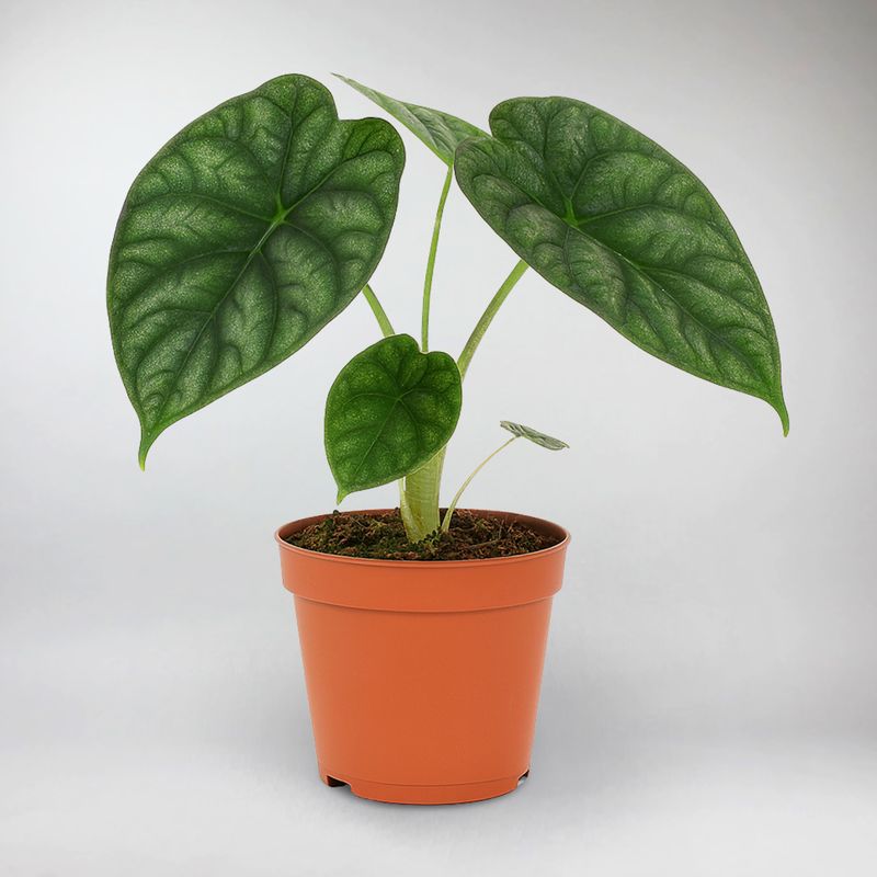 Die Alocasia Dragon Scale ist eine beeindruckende Sammlerpflanze mit dicken, skulpturartigen Blättern, die an Reptilienpanzer erinnern. Die strukturierte grüne Oberfläche und die tiefen Blattadern verleihen ihr ein kühnes, exotisches Aussehen. Sie bevorzugt helles, indirektes Licht, warme Temperaturen und eine höhere Luftfeuchtigkeit. Gießen Sie sie, sobald die obersten Zentimeter der Erde trocken sind, und schützen Sie sie vor Zugluft, um optimales Wachstum zu gewährleisten.