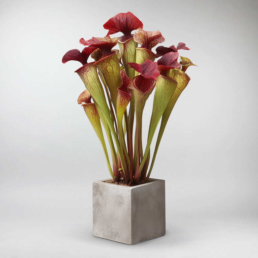 Die Juthatip Soper Kannenpflanze ist ein echter Blickfang und eine lebende Skulptur! Ihre rosa geäderten Zapfen haben gerüschte Hauben. Diese Hybridpflanze ist außerdem mit glitzerndem Verdauungssaft, auch Nektar genannt, gefüllt – perfekt, um Insekten wie Fliegen und sogar Wespen anzulocken. Ideal für moderne Innenräume oder üppige Gewächshausbepflanzungen, zaubert sie in jeden Raum eine Atmosphäre des Staunens und der Faszination.