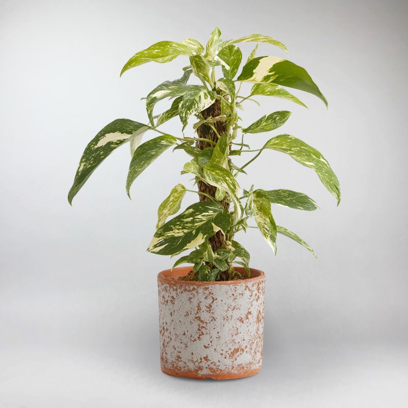 Die marmorierte Drachenschwanzpflanze, auch bekannt als Epipremnum Pinnatum Marble Variegata, ist eine skulpturale, rankende Pflanze, die Regalen, Spalieren und Hängeampeln eine dramatische Note verleiht. Sie ist perfekt für Sammler und stilbewusste Pflanzenliebhaber.