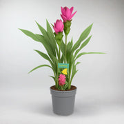 Die Curcuma Siam Splash beeindruckt mit ihren tulpenförmigen Hochblättern in Fuchsia und Magenta, die über üppigem grünem Laub thronen. Dieses exotische tropische Schmuckstück verleiht Wohnzimmern und Wintergärten eine belebende, sonnenverwöhnte Atmosphäre und verwandelt jede Ecke in einen lebendigen, inselinspirierten Rückzugsort.