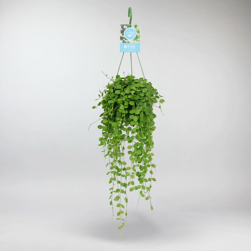 Auch als Knopf-Orchidee bekannt, sind die Blätter der String of Nickels klein, rund bis leicht herzförmig, glänzend und fleischig. Der Gesamteindruck ist ein Vorhang aus grünen Münzen, der wunderschön aus Hängekörben, Wandhalterungen oder hohen Regalen herabhängt. Die Farben reichen von Hellgrün bis Olivgrün – einige Sorten weisen eine leichte Panaschierung oder einen silbrigen Schimmer auf. Verwenden Sie sie in einem Hängekorb, auf einer Holzplatte oder herabhängend von einem hohen Pflanzenständer. Kombinieren Sie sie mit herabhängenden Efeututen oder kompakten Farnen für eine vielschichtige Textur und vermeiden Sie es, sie an Stellen zu platzieren, an denen ihre zarten Stängel beschädigt werden könnten.